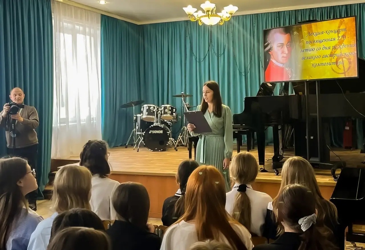 Прекрасная музыка великого композитора В. А. Моцарта прозвучала в исполнении учащихся и преподавателей ДМШ 11. Зрители услышали отрывок из самой известной симфонии Моцарта № 40, менуэт из «Маленькой ночной серенады», в исполнении педагогического квартета «Дивертисмент» прозвучала увертюра к опере «Милосердие Тита». В исполнении выпускницы Смоляго Ульяны прозвучала соната F-dur.