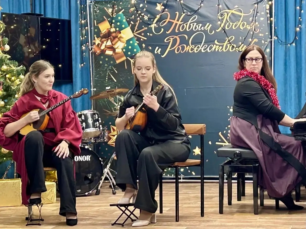 Трио балалаечников: Габидуллин Артем, Шостак Ростислав, Сорокина Софья, преподаватель Мясоедова Татьяна Сергеевна, концертмейстер Шуберт Наталья Сергеевна