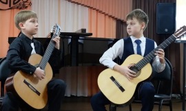 Дуэт гитаристов: Смоляго Кирилл, Шнайдер Сергей, преподаватель Нехорошева Людмила Ивановна